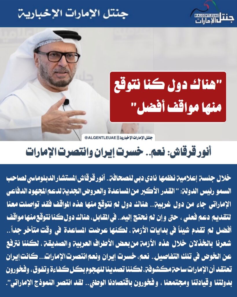 أنور قرقاش: نعم.. خسرت إيران وانتصرت الإمارات