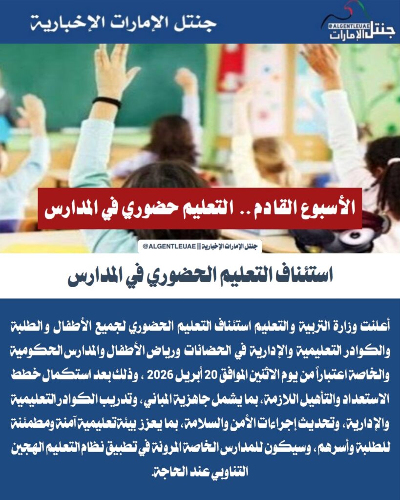 استئناف التعليم الحضوري في المدارس