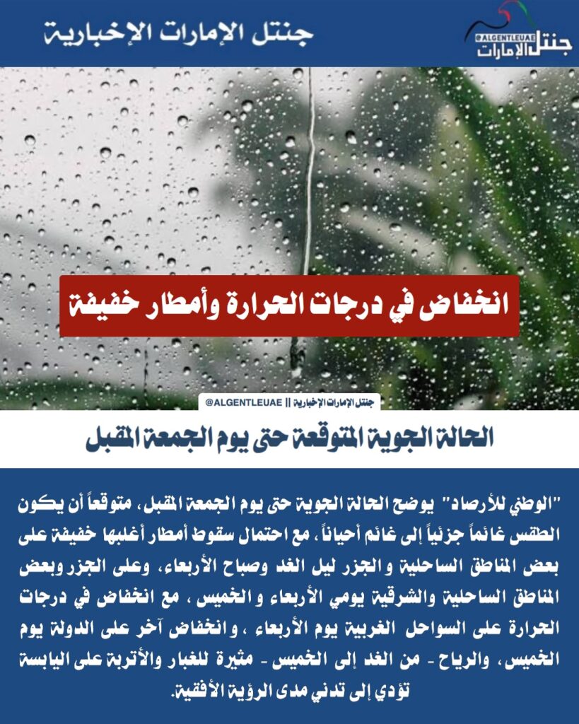 الحالة الجوية المتوقعة حتى يوم الجمعة المقبل