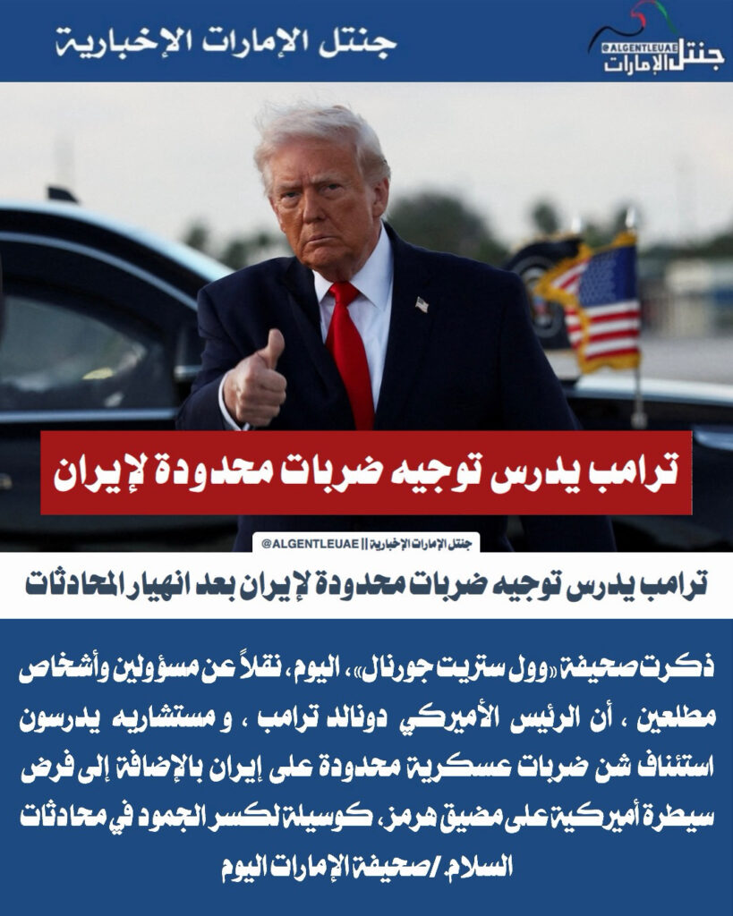 ترامب يدرس توجيه ضربات محدودة لإيران بعد انهيار المحادثات