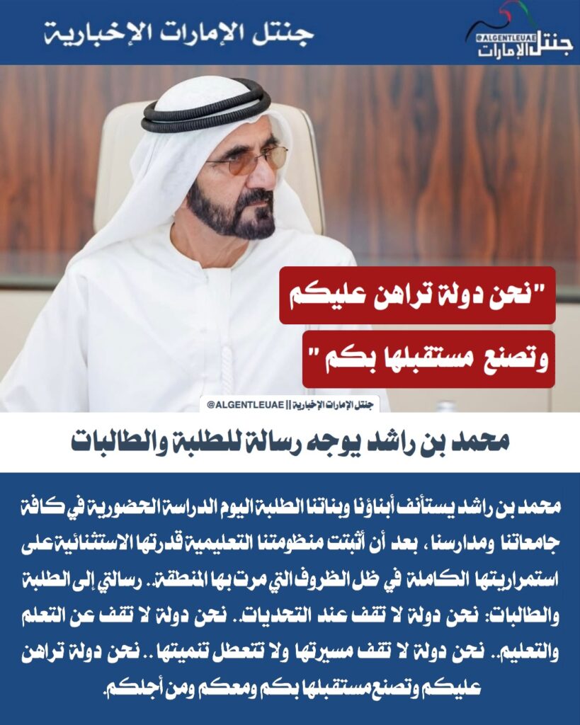 محمد بن راشد يوجه رسالة للطلبة والطالبات